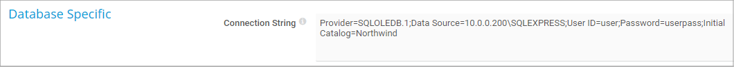 Provider=SQLOLEDB.1;Data Source=10.0.0.200\SQLEXPRESS;User ID=user;Password=userpass;Initial Catalog=Northwind