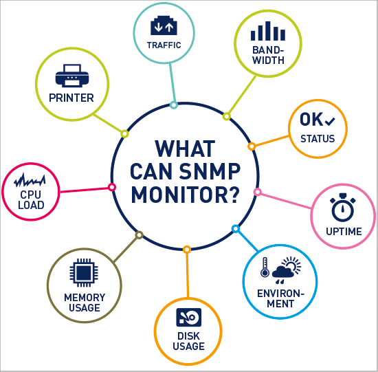 PRTG offers several generic sensors that work with almost every device that supports SNMP, the corresponding Management Information Base (MIB) file and OIDs, and it correctly implements the respective RFCs. The standard SNMP libraries of PRTG include predefined, common values for the generic SNMP sensors. You can monitor the following parameters with the generic sensors.