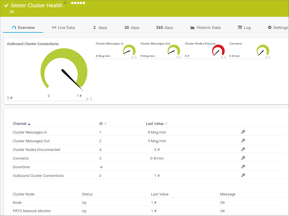 The Cluster Health sensor monitors the health of a cluster and indicates the system health status of PRTG.