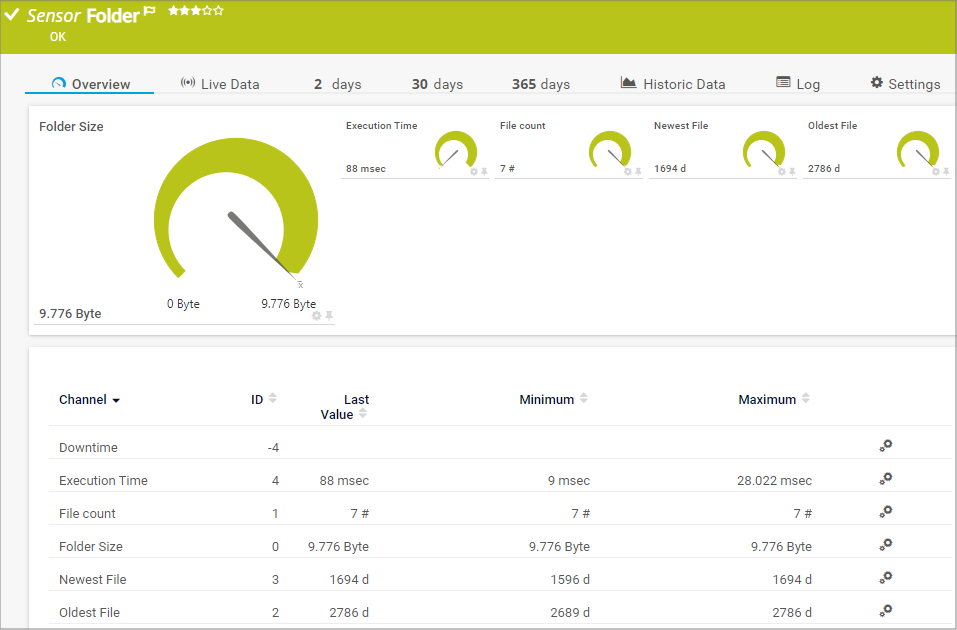 - Show warning status if older: Set the sensor to the Warning status if one of the files in the folder is older than a specific limit unit.