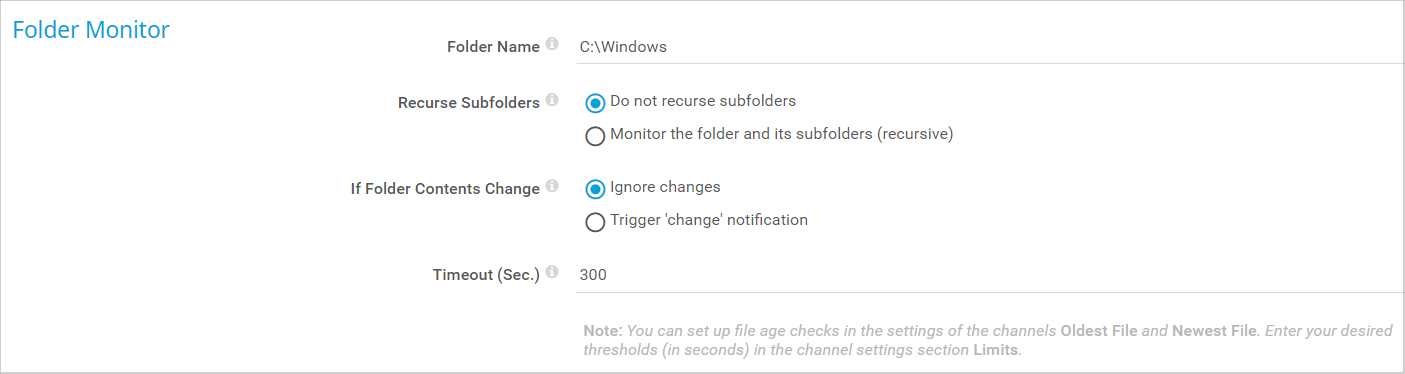 Specify if the sensor monitors the folder for certain file ages and shows a corresponding status: