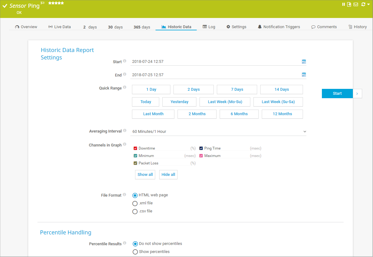 - Do not show percentiles: PRTG does not use a percentile formula to calculate your monitoring results. It only shows the standard values.