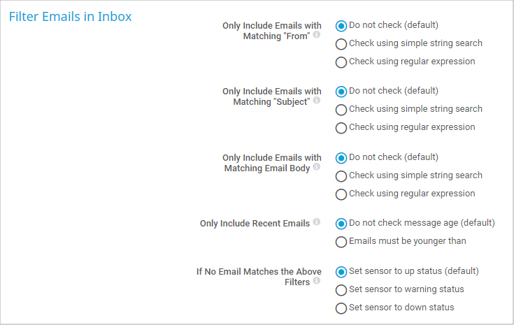 - Do not check message age (default): Check all emails that the mailbox contains.