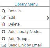Right-click a library or a library node on a library's Overview tab or Management tab to show its context menu.