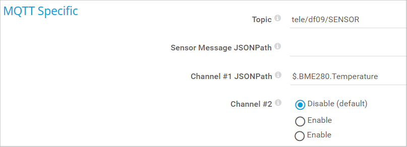 - Enable: The sensor creates this channel. Specify name, unit, and JSONPath for this channel below.
