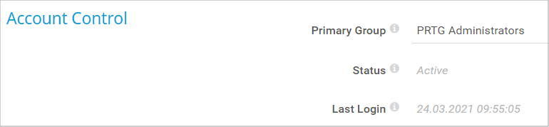 Shows the API user name of the user account. This is necessary for authentication for the PRTG API.