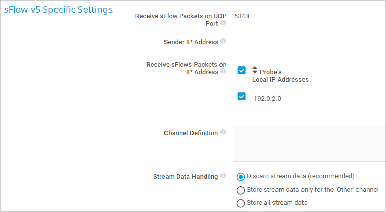IP address of the sending device. Use this if you have several devices that send flow data on the same port, and you want to divide the traffic of each device into a different channel.