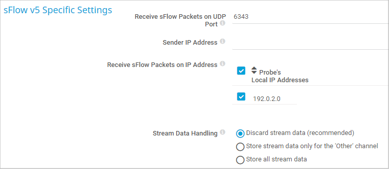 IP address of the sending device. Use this if you have several devices that send flow data on the same port, and you want to divide the traffic of each device into a different channel.