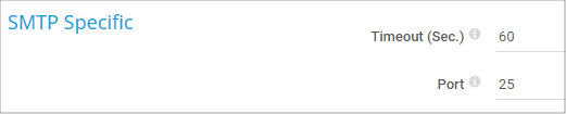 Enter the number of the port that the sensor uses to send an email via SMTP. The default port for unsecure connections is 25 and the default ports for secure connections are 465 or 587. The actual setting depends on the server that you connect to. Enter an integer value.