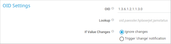 The SNMP Custom String Lookup sensor monitors a string that a specific object identifier (OID) returns via the Simple Network Management Protocol (SNMP). It can map the string directly to a sensor status by using a defined lookup file.
