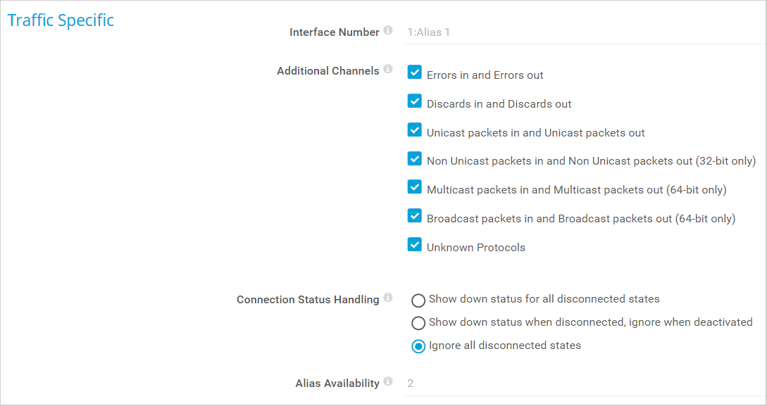 - Show down status for all disconnected states: Show the Down status for a disconnected interface. This applies if the ifOperStatus of the interface is not "up".